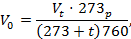 Приведение объема воздуха к нормальным условиям производят согласно газовым законам Бойля-Мариотта и Гей-Люссака по следующей формуле: