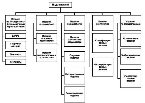 Рисунок А.1 - Виды и структура изделий по конструктивно-функциональным характеристикам