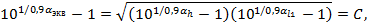 Определение значений αh и αl приведено в Приложении 1, величина (101/0,9α - 1) для соответствующих αh и αl - в Приложении 2. Эквивалентный угловой размер определяют по графику в зависимости от значений С (см. приложение 3).