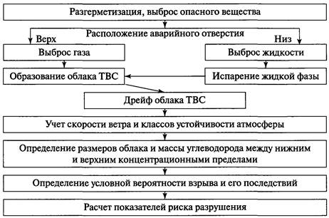 моделирования и расчета аварийного истечения и распространения опасных веществ при всех возможных сценариях аварийной разгерметизации оборудования и воспламенениях облаков ТВС;