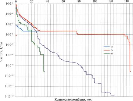 Частота аварий с гибелью не менее 1 человека - 2,5⋅10-3 1/год.