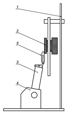 1 -держатель образца; 2 - образец (кнопка); 3 - зажигалка (источник огня); 4 - держатель зажигалки; 5 - пламя