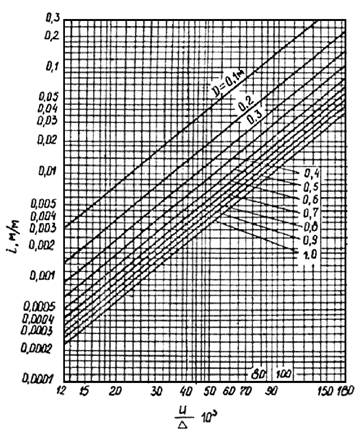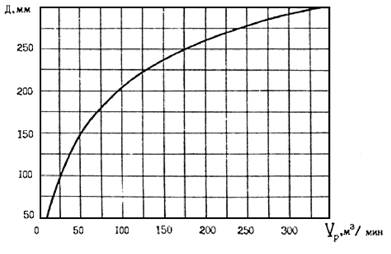 Диаметр воздухопровода выбирается на основании расчетного расхода воздуха (Vр) по графику, приведенному на рис. 6.1, и округляется до ближайшего стандартного.