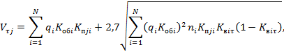где: Vτj - расход воздуха потребителями с повторно-кратковременным режимом работы в каждый τ-ый период j-ой смены, м3/мин;