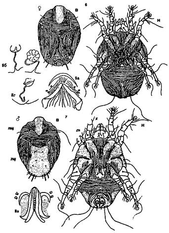Рис. 74. Клещи из н/сем. Analgoidea