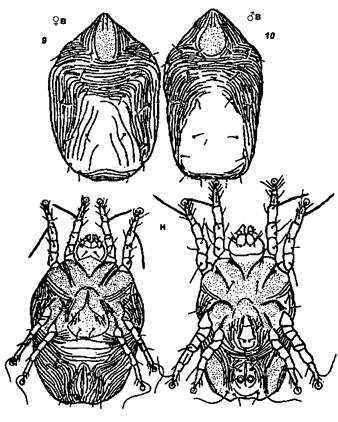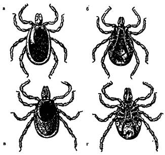 Рис. 72. Клещи из сем. Ixodidae таежный клещ Ixodes persulcatus,