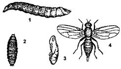 4 - взрослая муха (самка) (по Алфееву).
