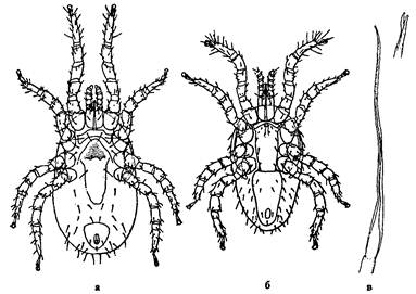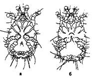 Рис. 73. Клещи из сем. Listrophoridae. Listrophorus gibbus: