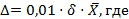 δ - относительная погрешность измерений массовой концентрации хлорэтанола, по табл. 1, %.