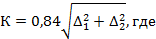Δ1 и Δ2 - абсолютные погрешности определения массовой концентрации железа в пробе без добавки и в пробе с добавкой. Значения Δ1 и Δ2 рассчитываются по формулам
