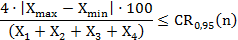 CR0,95(n) - значение критического диапазона для уровня вероятности Р = 0,95 и n - результатов определений.