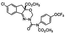 Название действующего вещества по ИЮПАК: Метил(S)-N-[7-хлоро-2,3,4а,5-тетрагидро-4а-(метоксикарбонил)индено[1,2-е] [1,3,4] оксадиазин-2-илкарбонил]-4'-(трифторметокси) карбанилат.