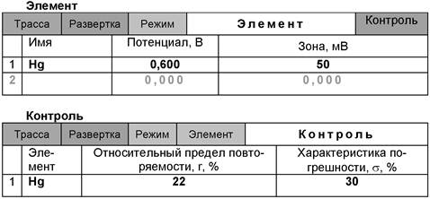 В таблице представлены значения массовых концентраций ртути для каждой из параллельных проб. Нажимают кнопку [Приемлемость], в случае, когда результаты измерений параллельных проб приемлемы, вычисляется среднее арифметическое значение, которое принимают за результат анализа.