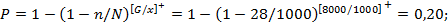 n2 = 1000[1 - (1 - 0,25)1000/8000] = 1000[1 - 0,751/8] = 1000 × 0,0353 = 35,3,