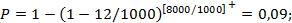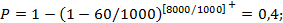 n1 = 1000[1 - (1 - 0,5)1000/8000] = 1000[1 - 0,51/8] = 1000 × 0,0830 = 83,0.