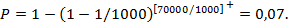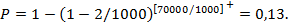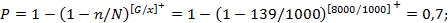 n3 = 1000[1 - (1 - 0,25)1000/70000] = 1000[1 - 0,751/70] = 1000 × 0,0041 = 0,4,