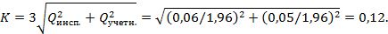 Поскольку все погрешности, как правило, документируются и рассчитываются при 95-процентной доверительной вероятности, то для получения среднеквадратических погрешностей значения 0,06 и 0,05 уменьшаются в 1,96 раза. Таким образом,