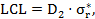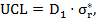 Расчет предела предупреждения UCL и предела действия LCL выполнятся по формулам