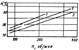 20. Для грануляции щебня дробилки должны работать с определенным числом оборотов ротора - 200 - 400 об/мин, в зависимости от содержания лещадных зерен в исходном материале (рис. 1). При таком режиме дробления форма зерен щебня улучшается (содержание в щебне зерен кубовидной формы доводится до 85 - 90 %) и снижается износ рабочих органов дробилки.