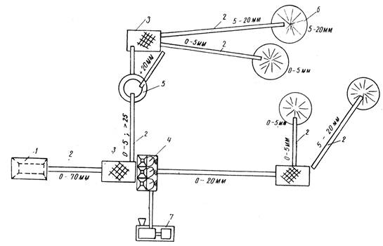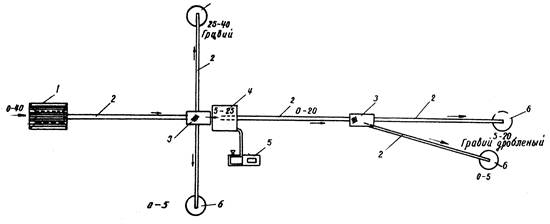 Технологическую схему дробления гравия выбирают с учетом зернового состава гравийной массы.