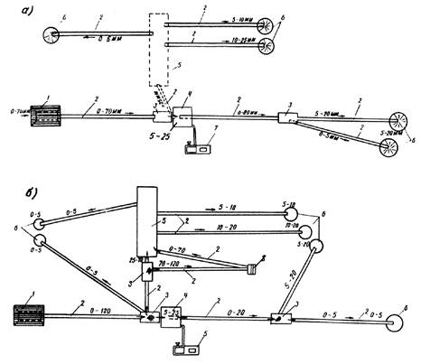 При содержании в гравии фракции 5 - 20 мм до 20 - 25 % его дробление целесообразно осуществлять совместно с фракциями крупнее 20 мм в конусных дробилках мелкого и среднего дробления типов КМД и КСД-А при ширине разгрузочной щели дробилок 8 - 12 мм.