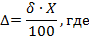 δ - граница относительной погрешности методики (показатель точности по диапазону концентраций, таблица), %.