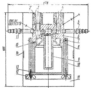 8 - резиновая прокладка, покрытая суспензией из фторопласта 15; 5 - резервуар