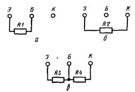 Погрешность измерения параметра h11э определяют путем измерения образцового сопротивления, приведенного на рис. 2, а. При проверке ручкой «Iэ мка» должен быть установлен ток Iэ = 30 мкА.