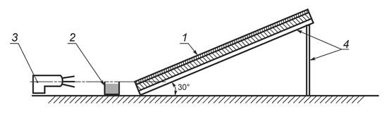 1 - образец покрытия; 2 - поддон с топливом; 3 - вентилятор; 4 - стальная опора Рисунок А.3 - Схема испытательного стенда для испытаний образцов покрытий |