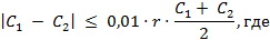 С1 и С2 - результаты измерений массовых концентраций акрилонитрила, полученные в условиях внутрилабораторной прецизионности, т.е. в одной лаборатории в разное время, разными операторами;