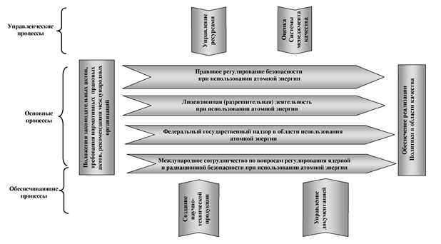 5. СМК Ростехнадзора направлена на постоянное улучшение деятельности при осуществлении Ростехнадзором полномочий по государственному регулированию безопасности при использовании атомной энергии, а также на мониторинг, анализ, управление текущими и запланированными процессами. СМК реализуется посредством: