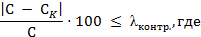 λконтр. - норматив контроля градуировочного коэффициента, % (λконтр. = 10 % при Р = 0,95).
