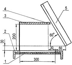 Держатель образца состоит из подставки и рамки. Рамку закрепляют горизонтально на подставке таким образом, чтобы нижняя кромка электрической радиационной панели находилась на расстоянии 30 мм по вертикали и 60 мм по горизонтали от верхней плоскости рамки с образцом.