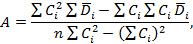 A и B - градуировочные коэффициенты, определяемые по методу наименьших квадратов по формулам: