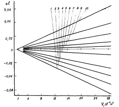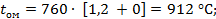 Пользуясь номограммой (рис. 1), найдем, что в помещении объемом 129,6 м3 и высотой 10 м максимальная средне - объемная температура при пожаре составит tом = 760 ºС.