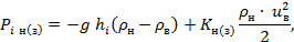 где μп, μл - коэффициенты расхода открытых дверных проемов и клапанов вытяжных шахт (принимаются в зависимости от конструктивного исполнения по справочным данным /3/; Fп - площадь открытых дверных проемов, м2; Tом - максимальная среднеобъемная температура в помещении, K; Тн - температура наружного воздуха, K; Kб - коэффициент безопасности; hп - высота дверных проемов (в качестве hп следует принимать наибольшую высоту верхнего края проемов смежных помещений и проемов на заветренный фасад здания), м; g - ускорение свободного падения, м∙с-2; Kз - аэродинамический коэффициент заветренного фасада здания, принимается равным минус 0,6; Kл - аэродинамический коэффициент на оголовке вытяжных шахт, принимается по паспортным данным; uв - скорость ветра, м∙с-1; H - высота от уровня пола помещения до оголовка вытяжной шахты, м.