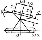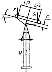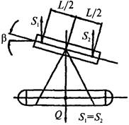 где β - контролируемый угол отклонения от вертикали полиспаста сопровождающего такелажного средства;