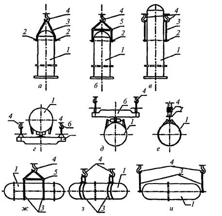 краном при кантовке груза (вертикально устанавливаемых аппаратов, высотных газовытяжных труб и т.п.);