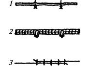 Зажимы на канатах в зависимости от масштаба: 1 -М 1:10 - М 1:25; 2 - М 1:5, М 1:4 и т.д.; 3 - М 1:50, М 1:100 и т.д. (разграничение рекомендуемое) |