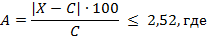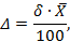 δ - граница относительной погрешности методики (показатель точности в соответствии с диапазоном концентраций, табл. 1), %.