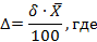 δ - граница относительной погрешности методики (показатель точности в соответствии с диапазоном концентраций, табл. 1), %.