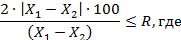 R - предел воспроизводимости (в соответствии с диапазоном концентраций, табл. 1), %.