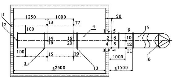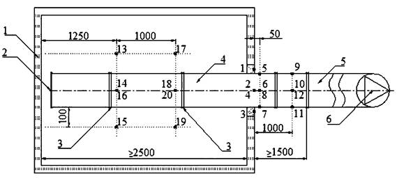 Рисунок Б.1 - Схема размещения горизонтальных воздуховодов на испытательном стенде