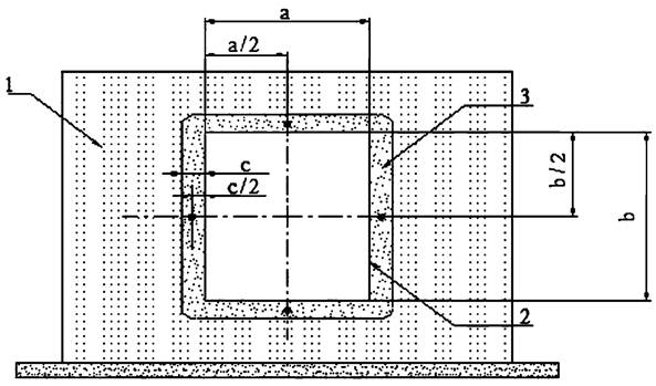 внутренние размеры поперечного сечения воздуховода; с - толщина заделки