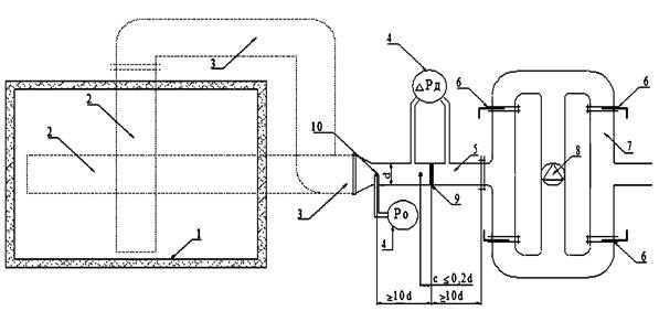 8 - вентилятор; 9 - расходомерная диафрагма; 10 - точка отбора давления в