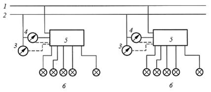 в киловатт-часах - цепь электропитания освещения 1; 6 - счетчик