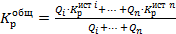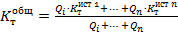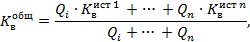 При наличии в системе теплоснабжения нескольких источников тепловой энергии общий показатель определяется по формуле: