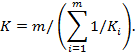 K - средневзвешенное значение градуировочных коэффициентов, рассчитанное по формуле: