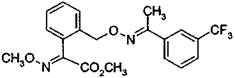 Название действующего вещества по ИЮПАК: метил (Е)-метокси-мино-{(Е)-α-[1-(α, α, α-трифтор-m-толил)этилидинаминоокси]-о-толил} ацетат.