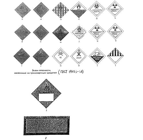 1.10. Вагоны, контейнеры, автомобили, транспортная и производственная тара, используемые для транспортирования опасных грузов, должны иметь на видных местах знаки опасности, являющиеся одним из элементов системы информации об опасности (СИО). Требования к СИО при транспортировании опасных грузов приведены в главах 2 и 3 настоящих Технических правил.